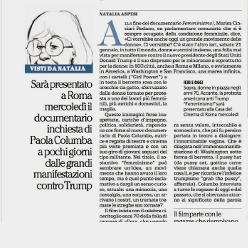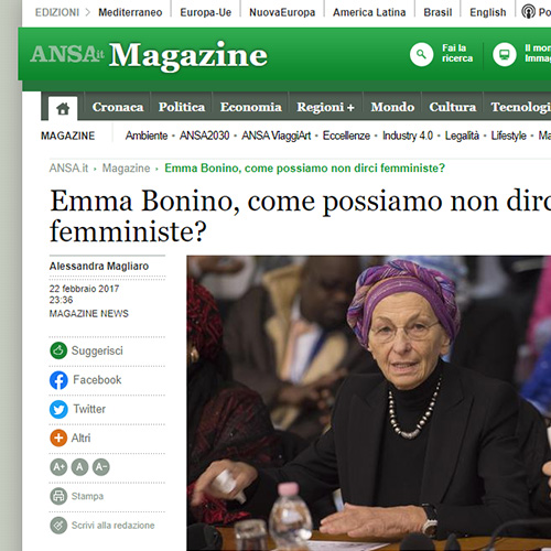 Alessandra MagliaroEmma Bonino, che non ha perso l'energia di quegli anni in cui era in prima fila nei cortei, nel documentario Femminismo! di Paola Columba, finalista ai Nastri d'argento 2017, dice: ''le voglio conoscere queste ragazze che dicono di non essere femministe"...