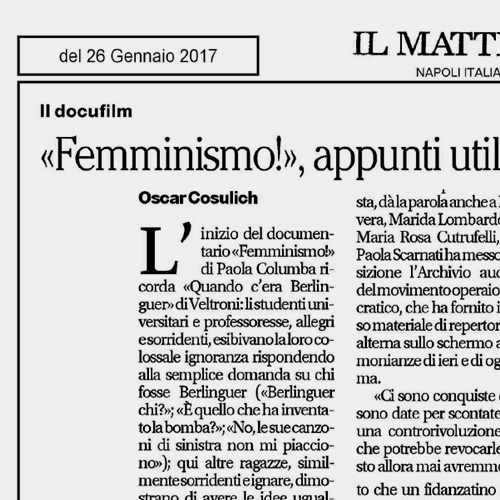 SNGCIUn documentario girato per rispondere ad un’urgenza, una riflessione sulle battaglie delle donne di ieri che sembrano a volte vanificate da una certa rassegnata indifferenza delle ragazze di oggi.